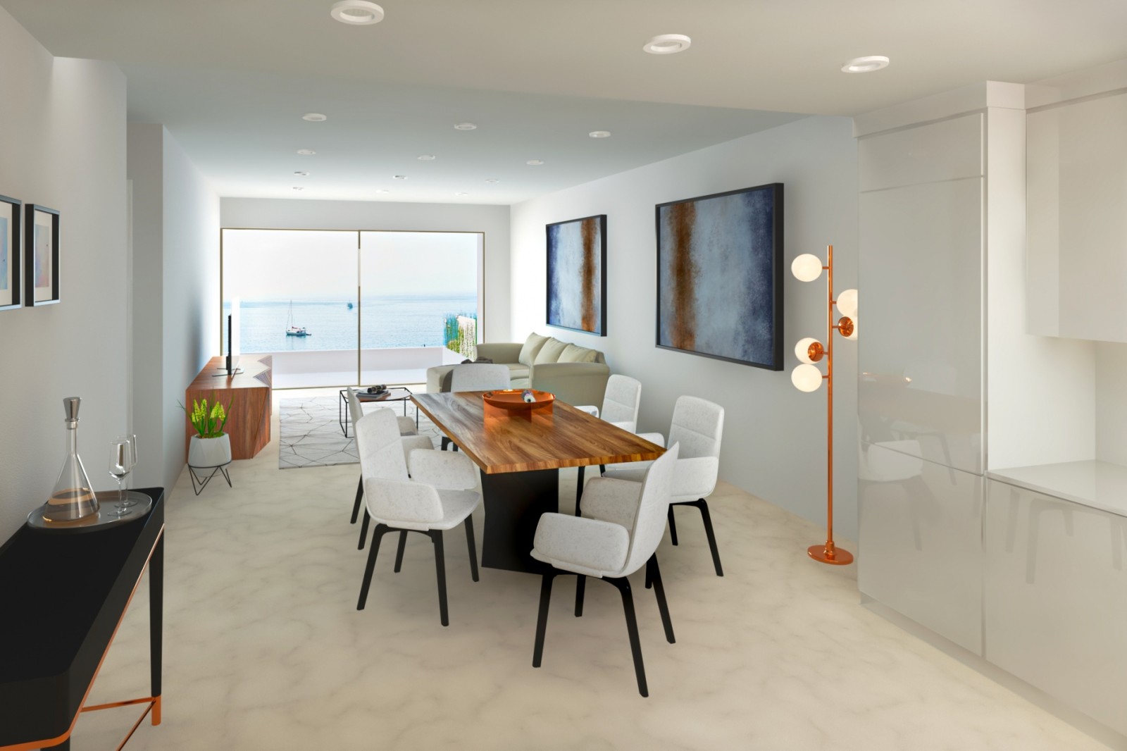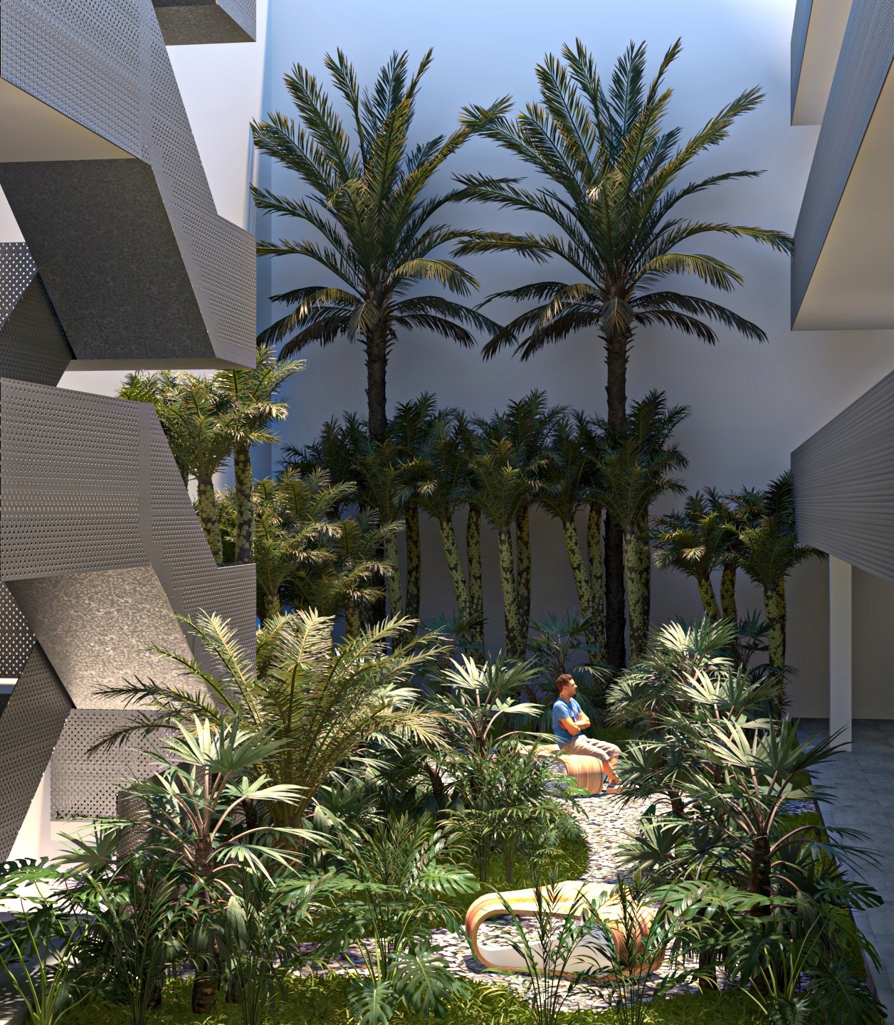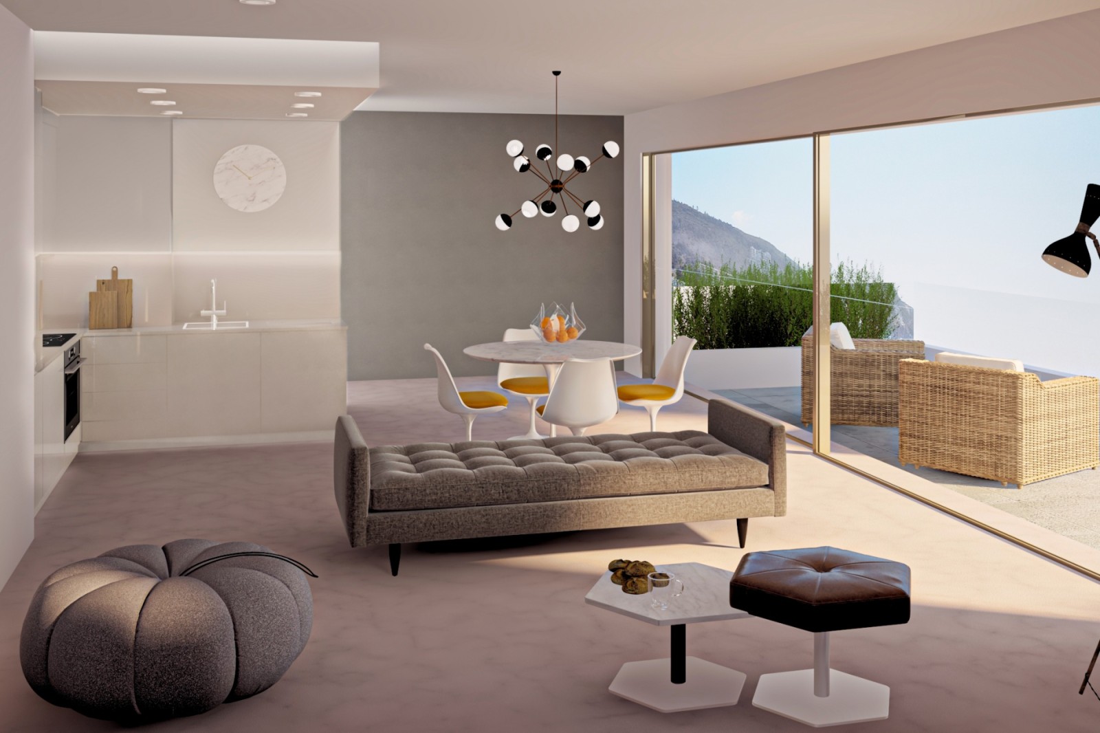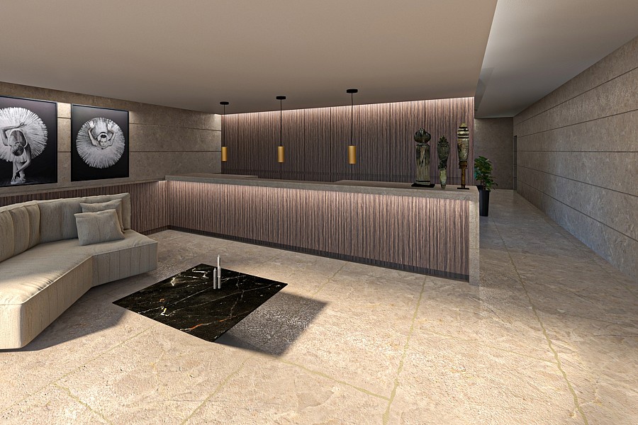 The project is composed by 24 flats and 3 commercial spaces. The one and two bedroom flats, ranging in size from 78m² to 110m², all have sea view, balcony and access to common areas which include reception, interior garden, gymnasium, sauna, underground parking and communal swimming pool.