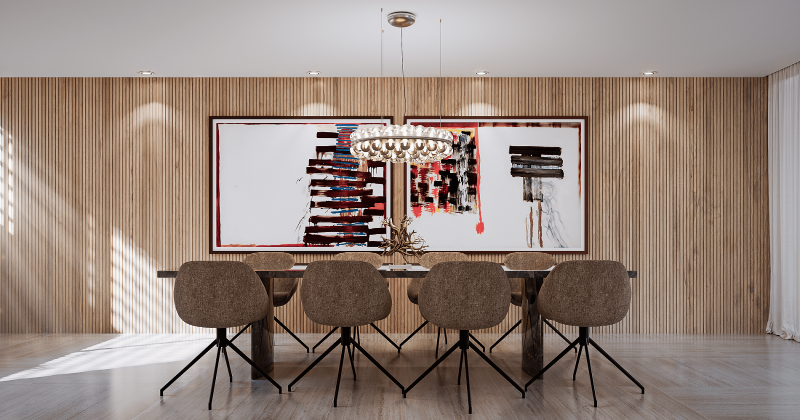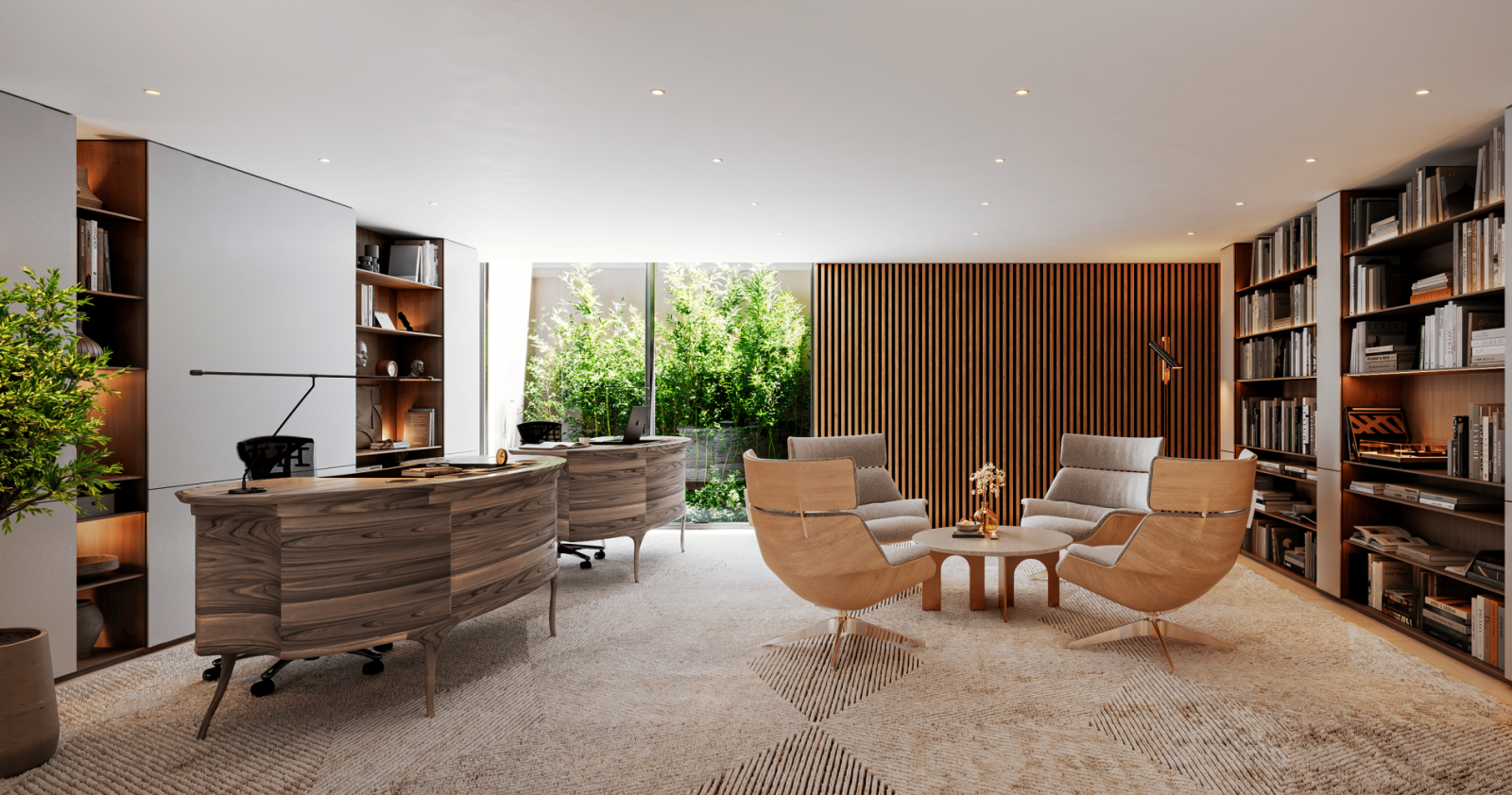 The exterior invites moments of well-being throughout the year, with a heated pool with retractable cover, hydromassage area, and terraces that extend the living space from the house to the garden. Noble materials create a timeless aesthetic, where elegance and comfort meet.