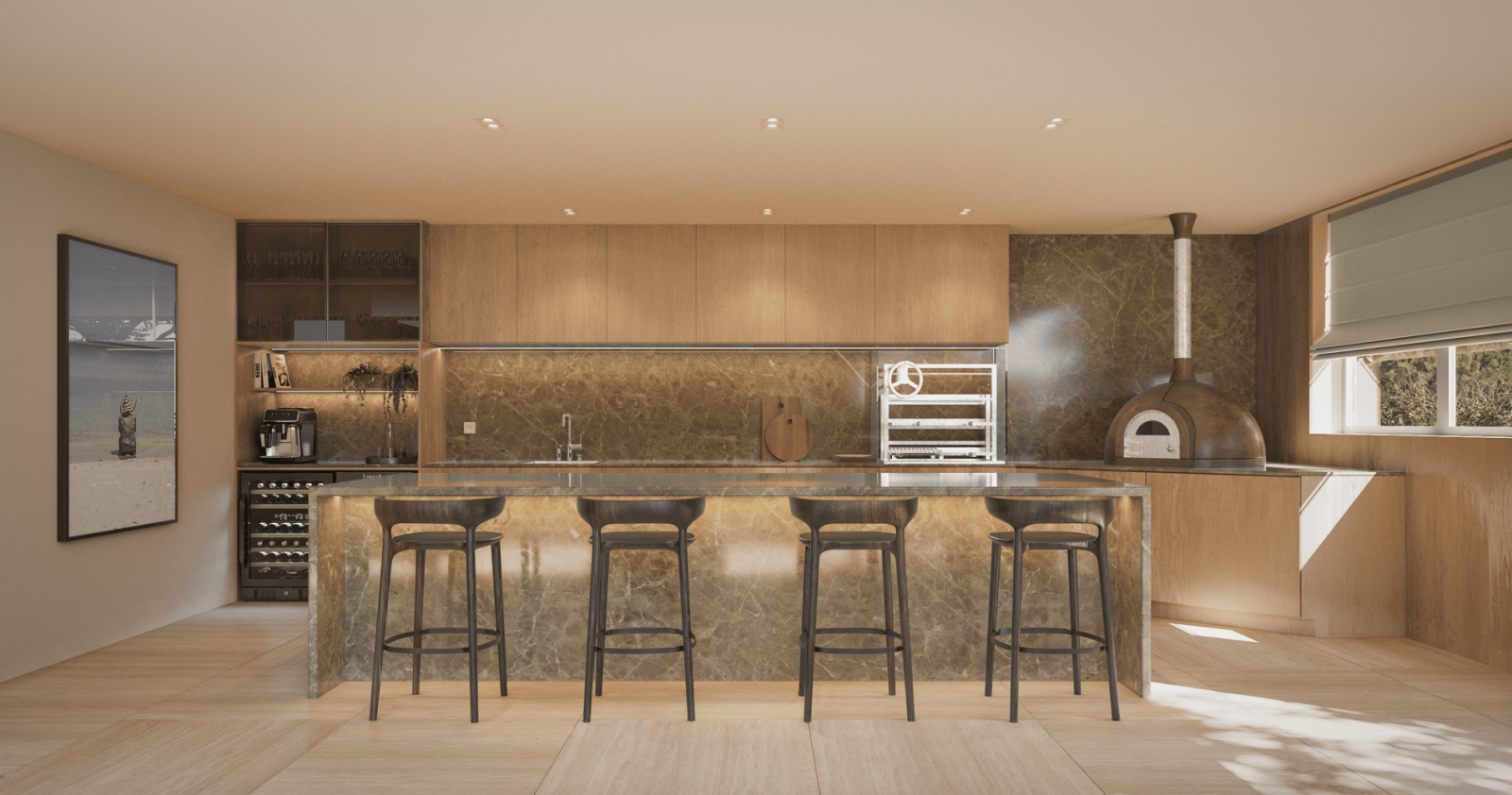 Sustainability and technology accompany every choice: energy rating A, photovoltaic solar panels, VRV air conditioning, and full home automation for lighting, HVAC, blinds, and curtains.