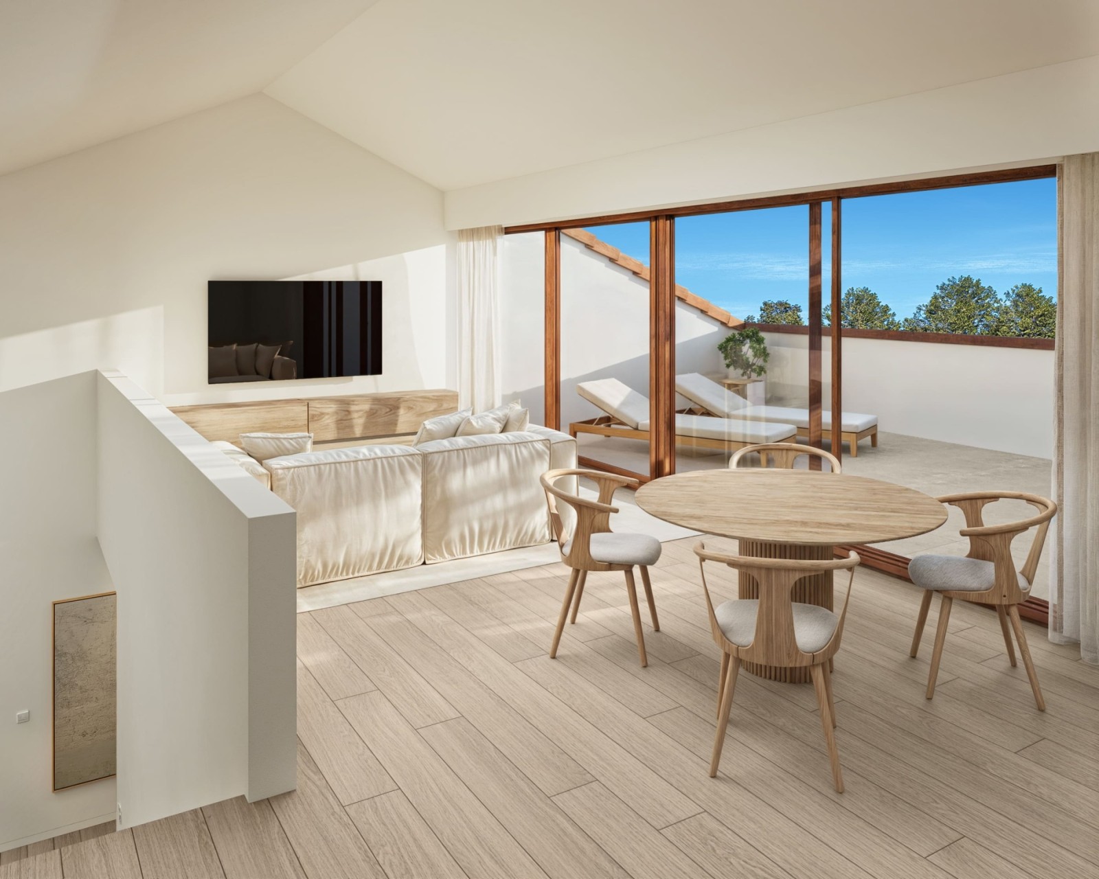 Desde amplos terraços a jardins privativos, as tipologias variam entre T2 e T3 térreos na categoria Garden, e duplex T2+1 e T3+1 na categoria Terraces, onde as zonas sociais com duplo pé direito e solários panorâmicos proporcionam uma sensação de liberdade e conexão com o exterior.